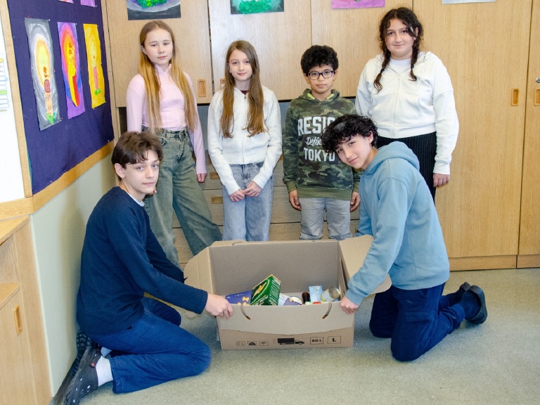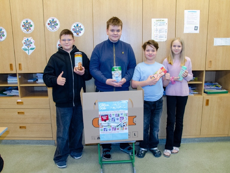 In jeder Klasse steht eine Sammelbox – gefragt sind haltbare Lebensmittel und Kosmetikartikel.
