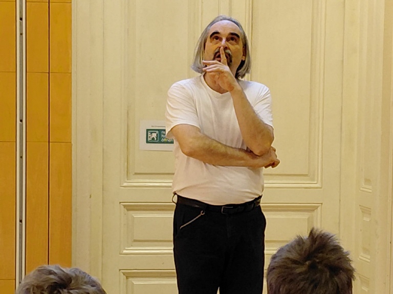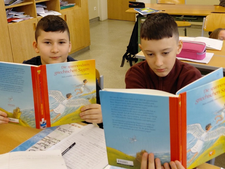 Für die 1. Klassen erzählte er Märchen, für die 2. Klassen standen griechische Sagen auf dem Programm.