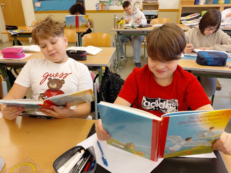 Ab Mittwoch stand das selbstständige Lesen im Mittelpunkt. Die Schülerinnen und Schüler wählten ihre Lektüre eigenständig und lasen während der Unterrichtszeit in allen Fächern. Parallel dazu arbeiteten sie an Plakaten und Präsentationen, in denen sie ihre Bücher vorstellten.